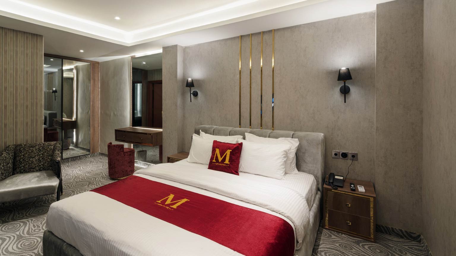 Featuring a spacious and comfortable bed, the room is furnished with elegant décor, soft lighting, and tasteful interiors that create a relaxing atmosphere. Guests can enjoy a range of premium amenities including high-speed Wi-Fi, air conditioning, a flat-screen television, a dedicated work desk, and ample storage space for personal belongings. Every element is carefully arranged to ensure both comfort and functionality throughout your stay.
